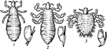 Вши и их яйца: 1 – головная; 2 – платяная; 3 — площица.