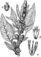 (внизу) и тычиночными (наверху) цветками;
