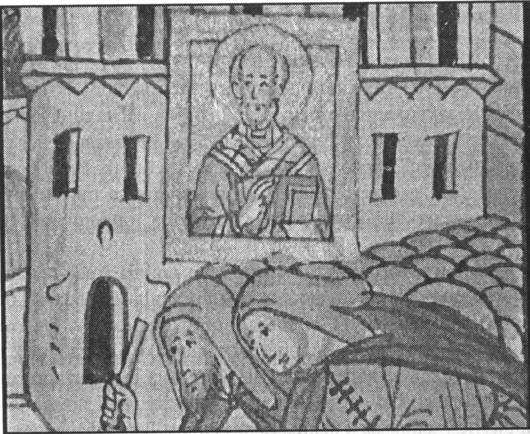 5. Московляне с иконой Николая Угодника. Лицевой свод XVI века.