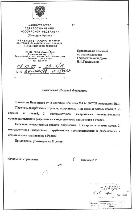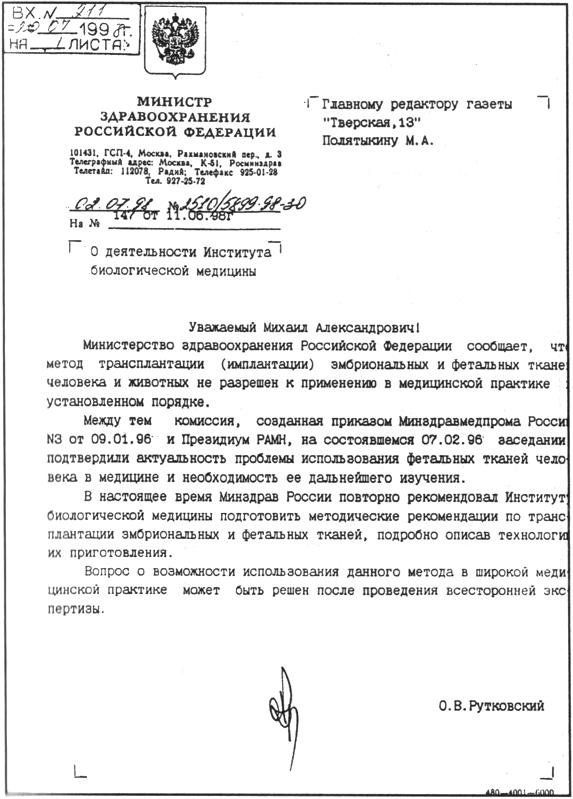 20. Документ 1998 года: методы фетальной терапии не имеют официального разрешения Минздрава. Почему же они безнаказанно практиковались и практикуются до сих пор?
