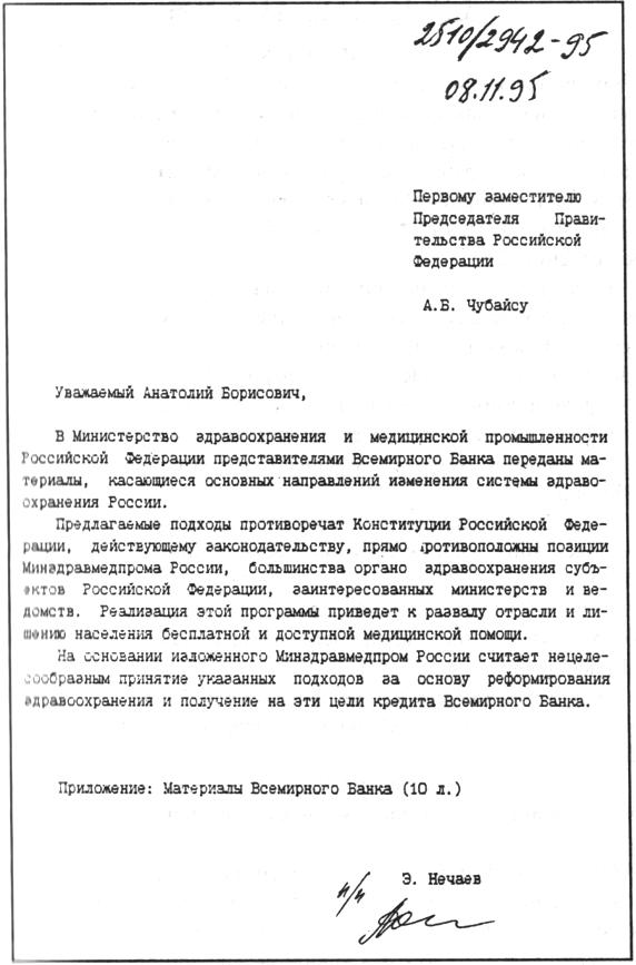 22. Письмо Э. Нечаева А. Чубайсу об опасных планах Всемирного банка. Велиар ответил министру отставкой.
