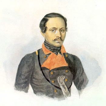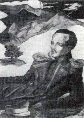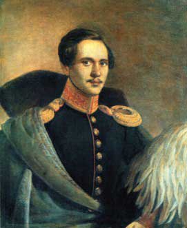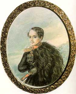 ![]() В мундире Нижегородского драгунского полка. 1837-1838. Автопортрет. Акварель. Одно из лучших и достовернейших изображений поэта, в черкеске с газырями, наброшенной на плечо бурке, с шашкой на поясе. |