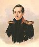 ![]() В штатском двубортном сюртуке с красными обшлагами. 1840. Худ. П.Е. Заболотский. |
