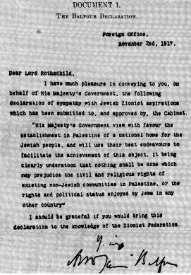 В самой Эрец-Исраэль тем временем происходили тяжелые бои. С самого начала войны турки проявляли глубокое недоверие к еврейским поселенцам. С другой стороны, противостоявшие Турции союзники стремились заручиться поддержкой местного еврейского населения и обещали поселенцам улучшение их положения в случае своей победы. Еврейский легион, созданный в 1917 году, сражался в составе британских сил в Палестине под командованием генерала Алленби. В рядах легиона находился выходец из России Давид Грин, впоследствии ставший известным под именем Давид Бен-Гурион, — первый премьер-министр государства Израиль. Войска генерала Алленби разбили турок в 1918
